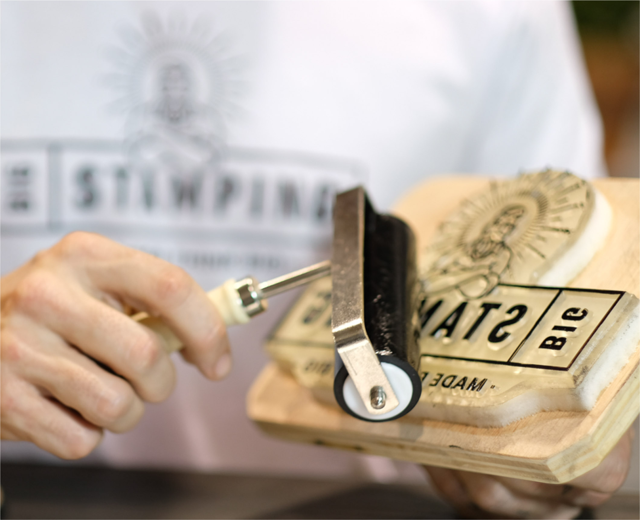 BigStamping is the dream come true of 4 stampers. It was born within an already consolidated company, since 1975, the year in which two brave men set up a small stamp and engraving workshop, initially using the linocut technique, one of the first techniques in graphic reproduction to produce stamps in a totally handmade way, until advancing to flexography, an industrialised graphic pre-printing technique, becoming today an important company in the graphic arts sector.