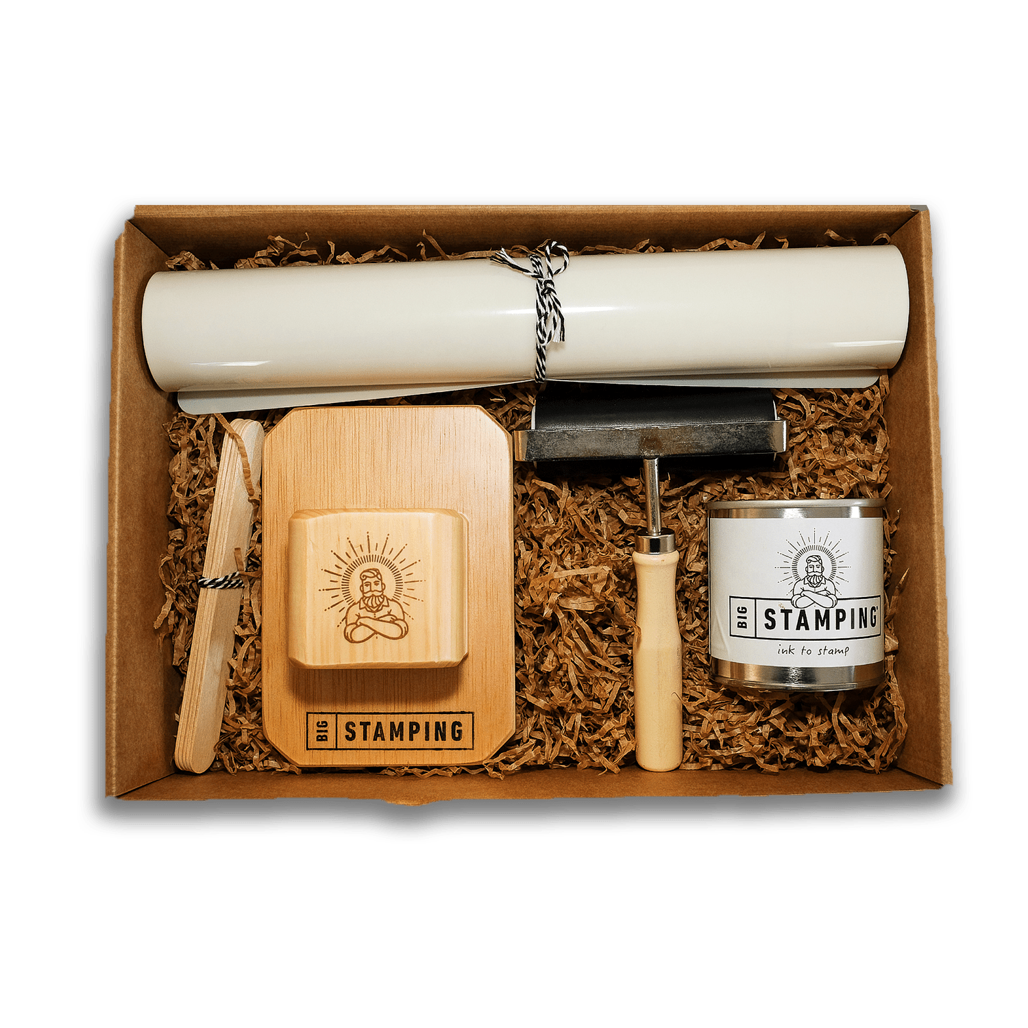 Notre Basic Stamping Kit contient tout ce dont vous avez besoin pour commencer à tamponner. En achetant ce kit ou l’un de nos grands kits de tampons, vous serez assuré de recevoir tous les éléments pour imprimer vos créations sur une multitude de supports tels que boîtes en carton, sacs en papier, boîtes en bois, t-shirts, sweatshirts, etc.
